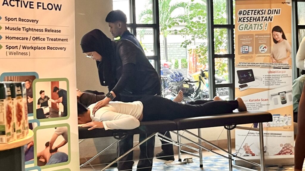 Tak hanya bersepeda dan yoga bersama, acara ini juga menghadirkan berbagai fasilitas pendukung kesehatan, seperti cek kesehatan umum, pemeriksaan kesehatan wajah (skin check) serta pijat olahraga.