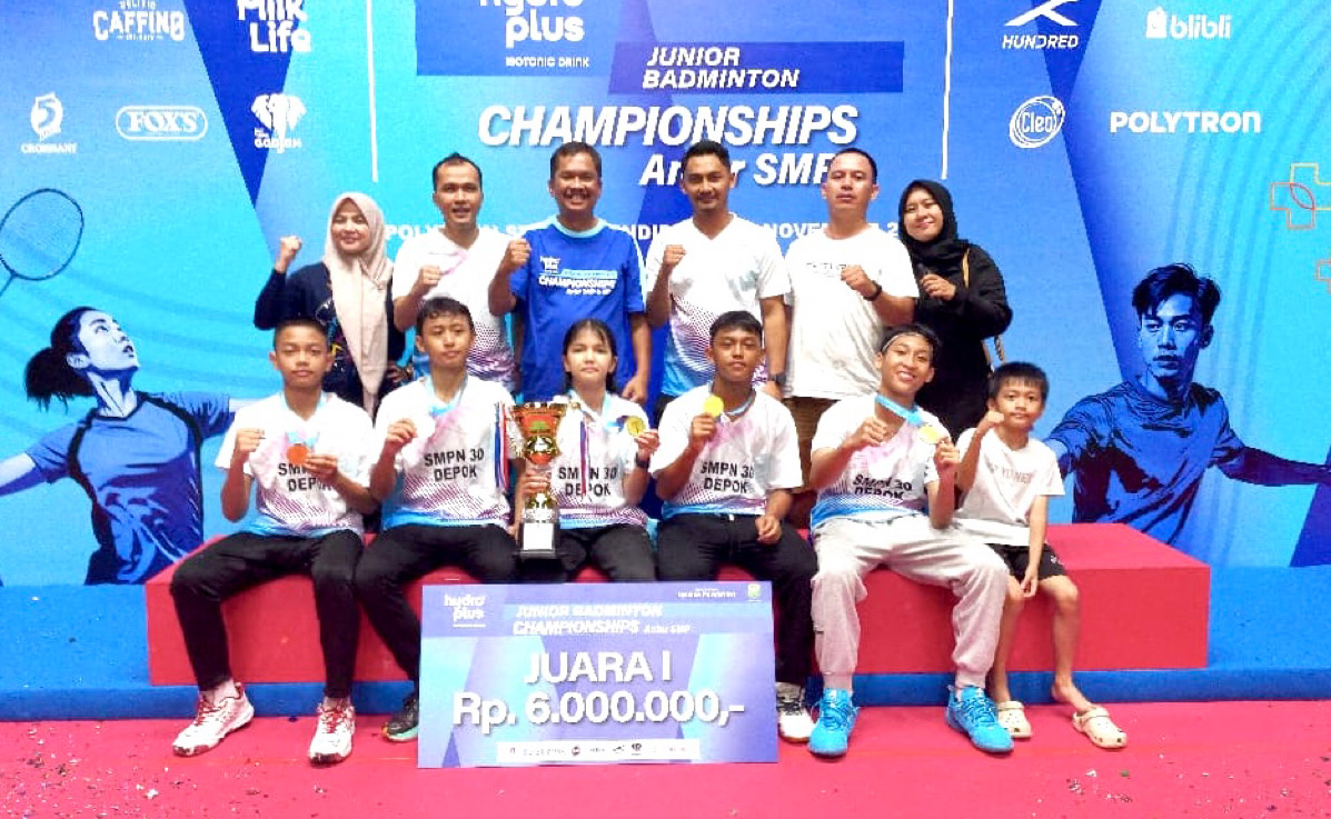 FEM DEPOK – Tim bulutangkis SMPN 30 Kota Depok tampil gemilang dan sukses menjadi juara pada Kejuaraan Bulutangkis Beregu Antar SMP HydroPlus Badminton Championships 2025 yang digelar di Polytron Stadium Universitas Diponegoro, Semarang, Jawa Tengah, pada 14–16 November 2025.